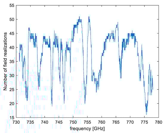 Figure 9 shows the number of field realizations selected by the algorithm corresponding to the K-factor, shown in red in Figure 8, for each frequency in the considered frequency range.