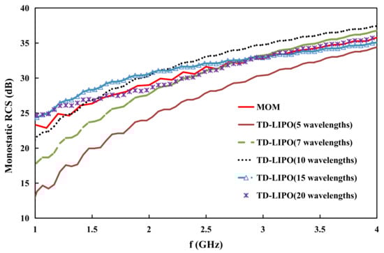 Monostatic RCS results for different size regions based on TD-LIPO method.