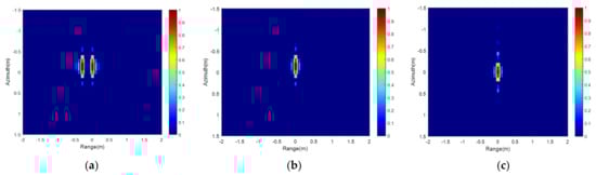 Normalized ISAR images of the dihedral angle under different methods. (a) TDPO; (b) TD−LIPO; (c) FEKO_MLFMA.