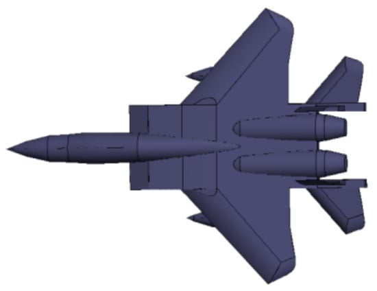 The top and side views of the aircraft are shown in Figure 17 and Figure 18. The size of the aircraft is 4.0 m × 3.5 m × 0.92 m. The unknown number is 677,408. The incident angle is and the azimuth angle is . The look angle of the radar varies from to around the center angle . The polarization is horizontal. The number of iterations for GPU-TD-LIPO is one.