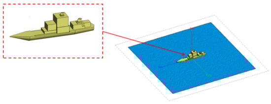 As shown in Figure 20, there is a ship on the rough surface. The size of the rough surface and the ship are 10 m × 10 m and 4 m × 1 m × 1.1 m, respectively. The unknown quantities of the ship and the rough surface are 449,446 and 500,000, respectively. The random rough surface here is generated using a Gaussian spectral density function, and the expression of the spectral density function for a two-dimensional Gaussian rough surface is: , where represents the root mean square height, and and represent the correlation lengths of the random surface in the and directions, respectively. and are the spatial wave numbers in the and directions, respectively. Here and . The dielectric constant of the rough surface is . The incident angle is and the azimuth angle is . The look angle of the radar varies from to around the center angle . The polarization is vertical. The number of iterations for GPU-TD-LIPO is two.