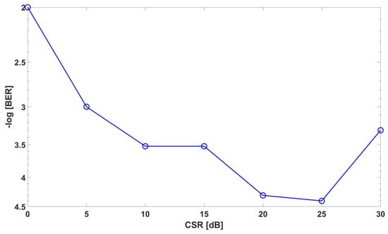 Bit error ratio (BER) for 10 km SMF with 3 m wireless distance for CSRs.