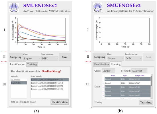 - Sector III: the identification and training operation sector. Empirically, the identification and training operations are mutual exclusive, and, thus, are placed in two different tabs sharing sector III. The operation processes for training and identification are detailed as follows: