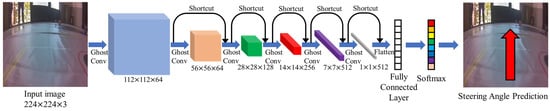 Even though YOLOv4-tiny and ResNet18 can perform precisely in object detection and steering angle prediction, we still intend to modify their network architecture to speed up the algorithm execution. If so, the new approach can shorten the response time of self-driving control to minimize the errors of driving judgment. Moreover, the model will also consume less power to realize energy-efficient object detection and steering angle prediction. Therefore, this study proposes a lightweight version of the network architecture of YOLOv4-tiny and ResNet18 to replace traditional convolution with a fast convolution within their models, where we have constructed their rapid models, abbreviated LW-YOLOv4-tiny and LW-ResNet18, as shown in Figure 10 and Figure 11, respectively. The proposed approach can significantly reduce the number of visual computations due to lightweight network architecture.