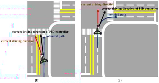 PID controller. (a) The architecture of the PID controller; (b) going straight; (c) taking a right turn.