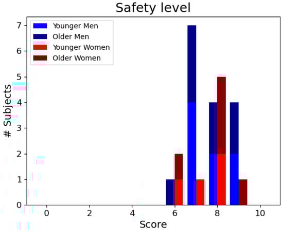 For question number four about the safety level perceived by the volunteers, the histogram is presented in Figure 10.