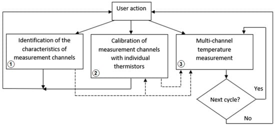 The multi-channel temperature measurement procedure ➂ is the target procedure of the instrument. Temperature measurements are made continuously in subsequent cycles, and the results are stored in the system’s memory.