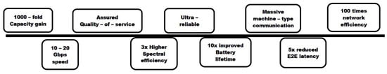 - Massive Machine Type Communication (mMTC): which permits a massive number of wireless devices connection density, energy efficiency, and reduced cost per device [15,16,17].