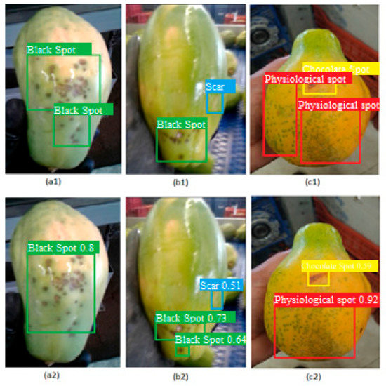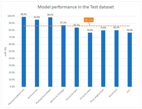 13]. Nonetheless, this dataset’s limitation stemmed from its labeling approach, which assigned only one disease per image even when the fruit displayed additional secondary diseases; this proved to be a limiting factor for practical applications.