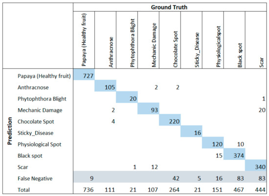 1]. As a consequence, early and accurate detection/classification for diseases (for simplification purposes, the term “disease” will be used in this study to refer both to biological diseases and to mechanical damage, scarring, and other non-biological evaluations of the fruit) are critical for ensuring quality control measures and mitigating losses in production activities.