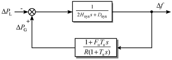 The classical system frequency response (SFR) model is shown in Figure 3. Based on the ASF model, it is assumed that the frequency of the entire power system is uniform, and a reheating link speed control system is equivalent to the frequency control of all units; therefore, the system is transformed into a single-unit model. In the figure, FH is the working ratio of the equivalent high-pressure cylinder; TR is the equivalent reheat time constant; R is the adjustment coefficient.