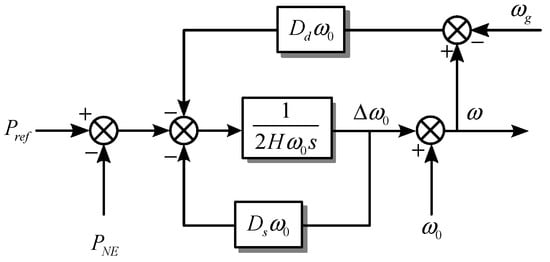 According to Formula (7), the unified VSG model can be obtained as shown in Figure 4. To simplify the analysis, we let Pref = 0, and we apply the small signal perturbation to Formula (7):