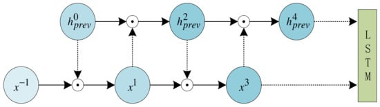 Consider the example of the superparameter set to four. In this case, the interaction process between and before each LSTM input is illustrated in Figure 8.