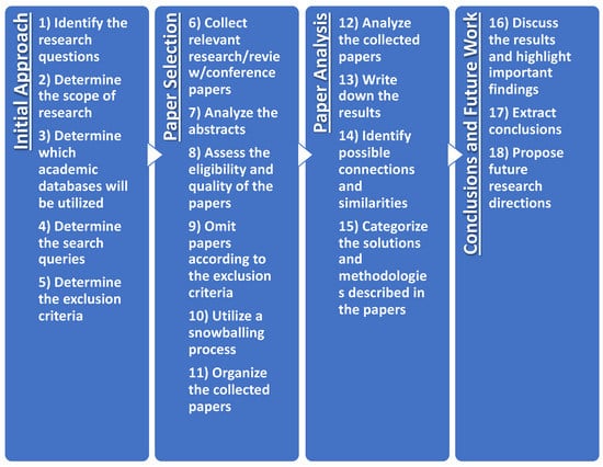 The remainder of the current paper is organized as follows: In Section 2, we present the steps followed in the current literature review and the categorization and subcategorization that we introduced for the analyzed publications. In Section 3, an analysis of the publications was included, based on the aforementioned categorization. Finally, in Chapter 4, we discuss the results of our analysis, draw conclusions, and describe future research directions.