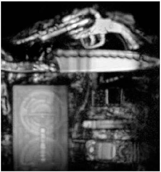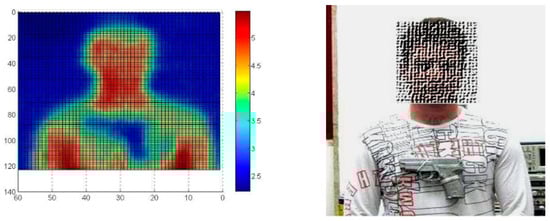 A THz reflection image of a person would show the outline of clothing and the reflection of objects beneath (such as weapons or key chains), but the person’s skin would appear substantially darker. False colors in a THz image taken from [29] is shown in Figure 2 below. A millimeter-wave image produced in the Ariel laboratory is shown in Figure 3.