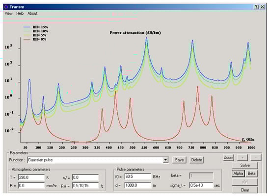 Propagation of THz radiation can be calculated using the TRANSM 1.2 software, which is described in [32]. A typical screen of this software is given in Figure 11. Note that the atmospheric absorption is high in the THz regime compared with the millimeter-wave regime. THz remote sensing and imaging requires strong sources and high-gain antennas.