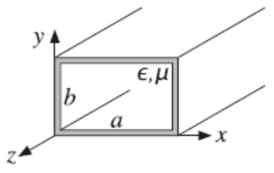 The waveguide description. (https://www.brainkart.com/article/TM-and-TE-waves-in-Rectangular-wave-guides_12511/ (accessed on 1 May 2023)).