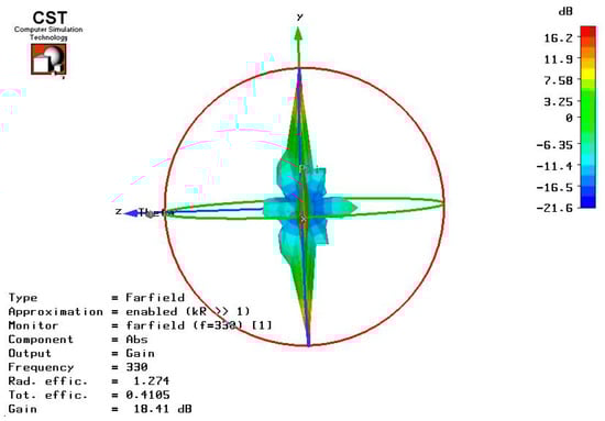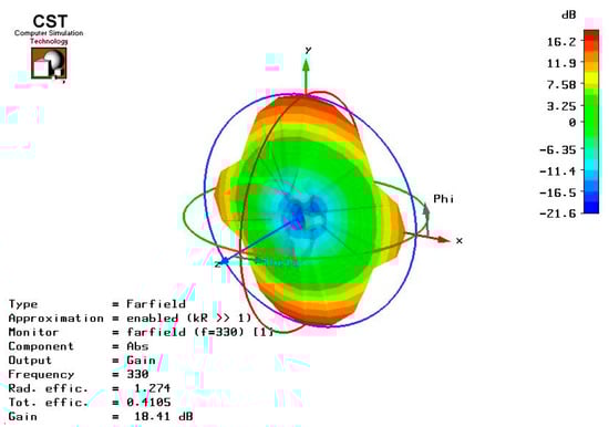 The simulation results show that the antenna gain is 18.4 dBi and the azimuth beam width is compared to 21.8 dBi and in the analytical design.