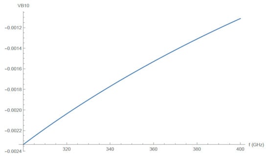 where is the reflection coefficient which is given in Equation (6) through the coefficient . is the reflection coefficient if the other side of the wave guide is terminated by a matched load. A plot of as a function of frequency is given in Figure 27 below.