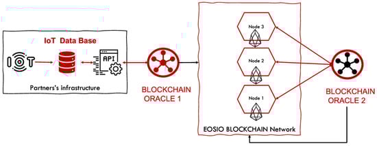 The oracles’ framework and interactions between sensors, blockchain networks, and oracles are presented in Figure 5. There is an existing IoT network that takes periodic measurements of various parameters. The measured parameters are recorded in a Postgres database on a server using API [].