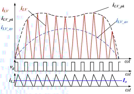 Therefore, according to Equations (5) and (6), the rectified input current is equal to the average current iL1(t) through the input inductor during one switching cycle, and the rectified input current can be expressed as
