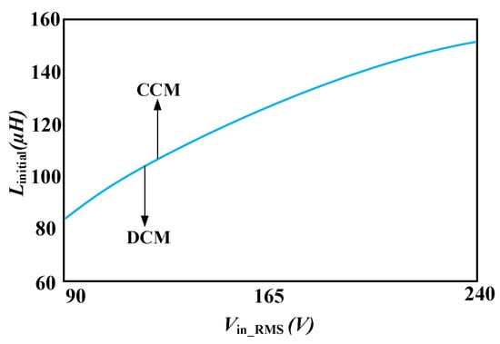 From (36) and combined with the circuit parameters, it is obtained that the initial inductance of variable inductor variation range is about 84 µH~152 µH at the input voltage Vin_RMS of 90 V~240 V, and its variation curve is shown in Figure 14.
