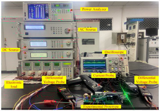 For the purpose of checking the correctness of the theoretical analysis, a 108 W experimental prototype has been built in the laboratory to compare the experimental results of both the traditional and proposed Cuk PFC converters. The specifications and the circuit parameters are listed in Table 1. The pictures of the experimental prototype and the experimental platform are presented in Figure 15 and Figure 16, respectively.