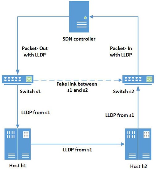 - Skowyra, R.; Lei, X.; Gu, G.; Dedhia, V.; Landry, J. Effective Topology Tampering Attacks and Defenses in Software-Defined Networks. In Proceedings of the 2018 48th Annual IEEE/IFIP International Conference on Dependable Systems and Networks (DSN), Luxembourg, 25–28 June 2018. [Google Scholar]