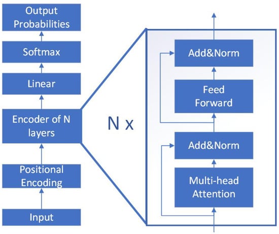 Utilizing an architecture that depends solely on attention mechanisms, the Transformer introduces a multi-head attention mechanism as a key innovation []. It consists of several components, including encoders and decoders, which are composed of multiple layers of self-attention and feed-forward neural networks. The encoder takes in an input sequence and generates a representation of that sequence, while the decoder takes in that representation and generates an output sequence.