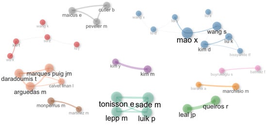 There are several researchers collaborating on projects that publish together very often. RQ2-4 aims to identify them. To this end, we created a graph of the authors’ collaboration networks, presented in Figure 8. Bolder edges indicate a stronger partnership relation between authors, i.e., the authors participated together in the same publications more often. For instance, Leal J. P. and Queiros R. authored many of their publications together. The same applies for Tonisson E. and Sade M., who also collaborated less frequently with Lepp M. and Luik P.