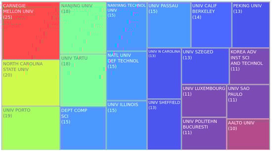 Figure 9. Top 20 authors’ affiliations by productivity in a tree map.