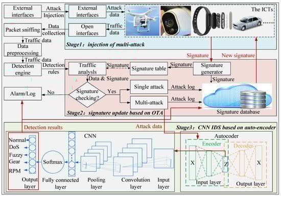 Figure 1 shows the overall process of the proposed framework. We divided the framework into three main stages, the injection of the multi-attack, signature upgrade based on OTA, and the CNN IDS based on an auto-encoder, which we will introduce in more detail below.