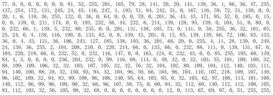 We first preprocess all the Portable Executable files in the dataset. Specifically, we first use IDA Pro disassembly tools to batch process all the software in the data set, and convert them to obtain the required binary files and assembler files (i.e., files in “.byte” and “.asm” formats). Then, we convert each byte of the pre-processed file into a decimal unsigned integer in sequence, which ranges from 0 to 255, and take the decimal value as the chrominance value of the pixel points of the gray image, so that each file can get a corresponding sequence of pixel chrominance values after processing. The read sequence is shown in Figure 2. When reading and converting bytes, we count the size of each preprocessed file (the number of bytes contained).