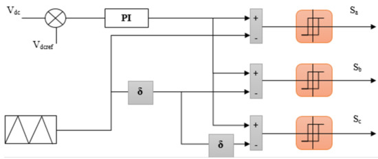 The switches are controlled by pulses that are generated by the intersection between a modulating carrier signal and a triangular waveform as illustrated in Figure 4. The duty cycle is determined by the output voltage regulation algorithm of the serial multicellular converter.