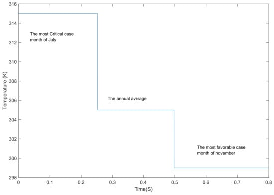 Three cases of temperature variation are shown in Figure 17, including the most critical case “month of August”, the annual average of illumination in the TFT zone in Illizi, Algeria, and the last most favorable case.