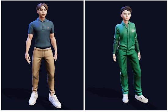 In prior research, scholars discovered that despite technical limitations, people prefer to be in control of their avatar design [20]; avatar customization can make digital gaming experiences more enjoyable [21]; and people actually spend a great deal of time customizing their avatars to represent identity-related characteristics when interacting with others online [22,23,24]. Researchers investigating this phenomenon have investigated how circumstances, present emotions, and the desire to impress might lead to the construction of different roles. In the virtual world, identities are more malleable and varied, and individuals have the possibility to have character experiences that are not attainable in real life [25]. Vasalou and Joinson [11] discovered that avatars on blogging sites correctly reflected the look, lifestyle, and tastes of their respective owners. Participants on dating and gaming platforms, on the other hand, highlighted other features of their avatars. Avatars used in games, for instance, tend to seem more powerful or intelligent, whilst those used in dating simulations tend to appear more appealing. This shows users’ avatar choices rely on communication objectives and virtual environments [11,26,27]. Previous research has shown that the correct use of avatars in online video conferencing, together with self-affirmation, has a positive impact on active participation in discussions [28].