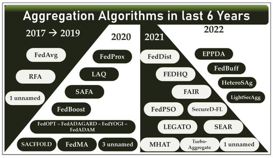 - Examining possible future prospects, which can be used as a starting point for further studies to improve aggregation algorithms in the field of FL.