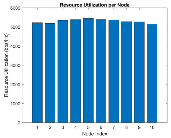 The energy efficiency of the proposed 6G system is improved compared to the other methods. The DRL agent optimizes beam-switching decisions in such a way that it reduces unnecessary energy consumption while maintaining high-performance communication links. The incorporation of 6G technologies, such as advanced power control schemes and energy-efficient hardware, further enhances the system’s energy efficiency. Similarly, the proposed 6G system model demonstrates more efficient resource utilization than the other methods. The DRL agent’s ability to adapt and optimize beam-switching decisions based on the current communication environment enables the system to utilize the available resources more effectively. By minimizing the interference between the vehicles and reducing the overhead associated with suboptimal beam patterns, the system ensures efficient use of the advanced resources provided by 6G communication systems. Results can be observed in Figure 14 and Figure 15.
