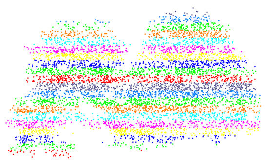 The unlabeled points in the intersection region were processed, as shown in Figure 10. This problem was similar to recovering the missing part of the crown. By referring to an idea that repairs the missing points based on their shape and structure [39], we also fully used the point cloud contour and optimized the shape of each layer bin.