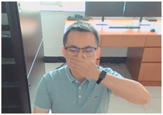 In the video acquisition in this study, the acquisition parameter was 30 fps, that is, 30 frames of images were collected per second. Therefore, the f-value of PERCLOS [24] was obtained by counting the number of image frames with open versus closed eyes, instead of the eyelid coverage area, as shown in Equation (2).