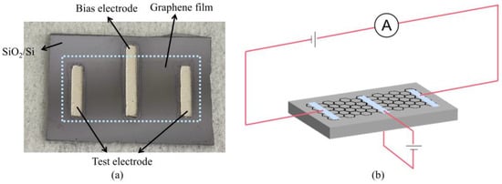 Graphene structure with adjustable conductivity. (a) Photograph of sample; (b) structure model.