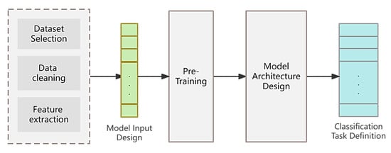 - Lin, X.; Xiong, G.; Gou, G.; Li, Z.; Shi, J.; Yu, J. Et-bert: A contextualized datagram representation with pre-training transformers for encrypted traffic classification. In Proceedings of the ACM Web Conference 2022 Virtual Event, Lyon, France, 25–29 April 2022; pp. 633–642. [Google Scholar]