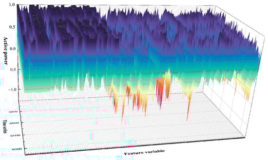 The power system is a complex network with numerous nodes and scenarios, which will lead to high dimensionality of operating data. There may also be complex nonlinear correlations between different dimensions, and some active and reactive data may have a high degree of similarity over time and even repeated variables to be selected. Not all characteristic variables have a reference significance for the operation mode []. Therefore, it is necessary to eliminate redundant feature variables and select representative feature variables to improve the efficiency of subsequent algorithms and the accuracy of results.