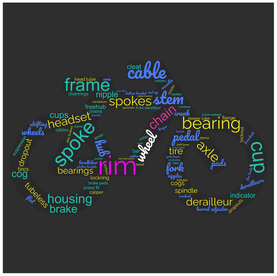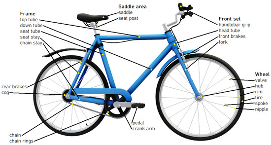 - Wikipedia. List of Bicycle Parts. 2022. Available online: https://en.wikipedia.org/wiki/ (accessed on 1 March 2023).