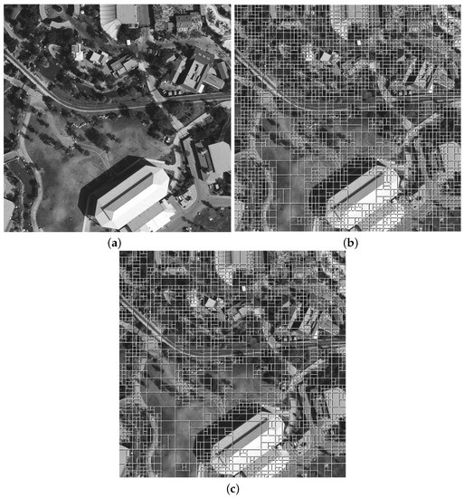 Illustration of the partition schemes: (a) test image Fr01, and partition schemes for (b) QS = 5 and (c) QS = 20.