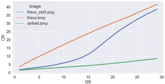 Dependencies of CR on QS for ADCTC determined for three test images.