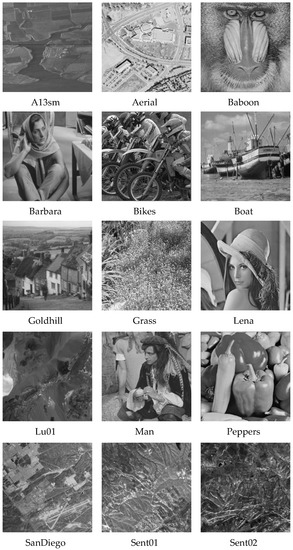 All of the images are of the size pixels, allowing for the use of coders’ versions freely available at https://ponomarenko.info/agu.htm (accessed on 28 April 2023) and https://ponomarenko.info/adct.htm (accessed on 28 April 2023). Note that an interested reader can find some performance comparison results there.