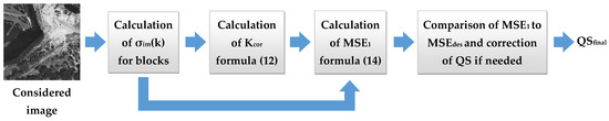 It is expected that prediction is possible not only for the MSE but also for visual quality metrics, both full-reference [39,40] and no-reference [41,42,43]. An extension of the proposed approach for visual quality metrics is one of the directions of further research. Another possibility is the application of some other coders as well as the extension of the proposed approach for video sequences. Additionally, a simple neural network may be implemented that uses the QS and a few parameters characterizing image complexity, such as entropy, variance, and edge ratio.