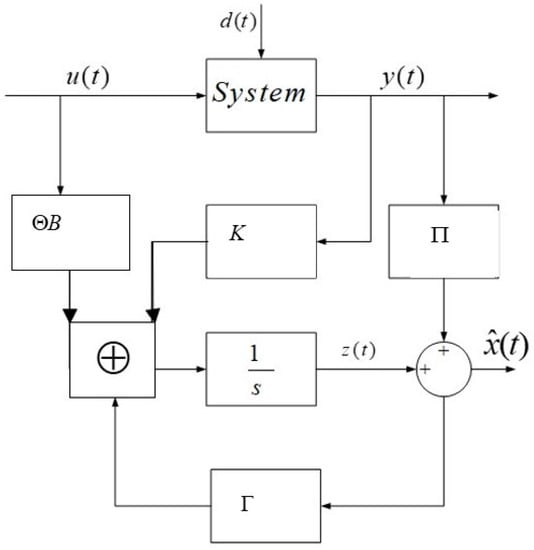 The use of a full-order observer, such as the one described in Equation (2), can provide valuable insights into the system’s behavior and help improve its performance. By estimating the system’s states accurately, the observer can facilitate control and optimization strategies, leading to more efficient and effective system operation. The system with UIO is illustrated in Figure 1.