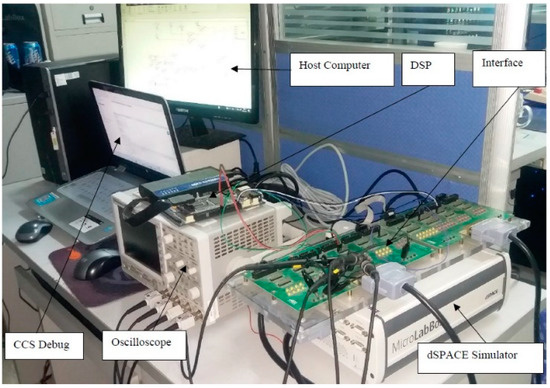 The proposed Unknown Input Observer technique was tested for its effectiveness and validity through experimental validation on a hardware-in-the-loop platform, which is shown in Figure 3. The test setup comprised two personal computers: one was used for the dSPACE software, and the other for code composer studio programming. In addition to these, a DSP control board (TMS320F28335), a real-time simulator for dSPACE, and an oscilloscope were utilized to display signal waveforms and act as the information interface. The analog signals were received by the DSP from the dSPACE simulator, and after undergoing analog-to-digital conversion and computation, the control signals for the switching devices were delivered.